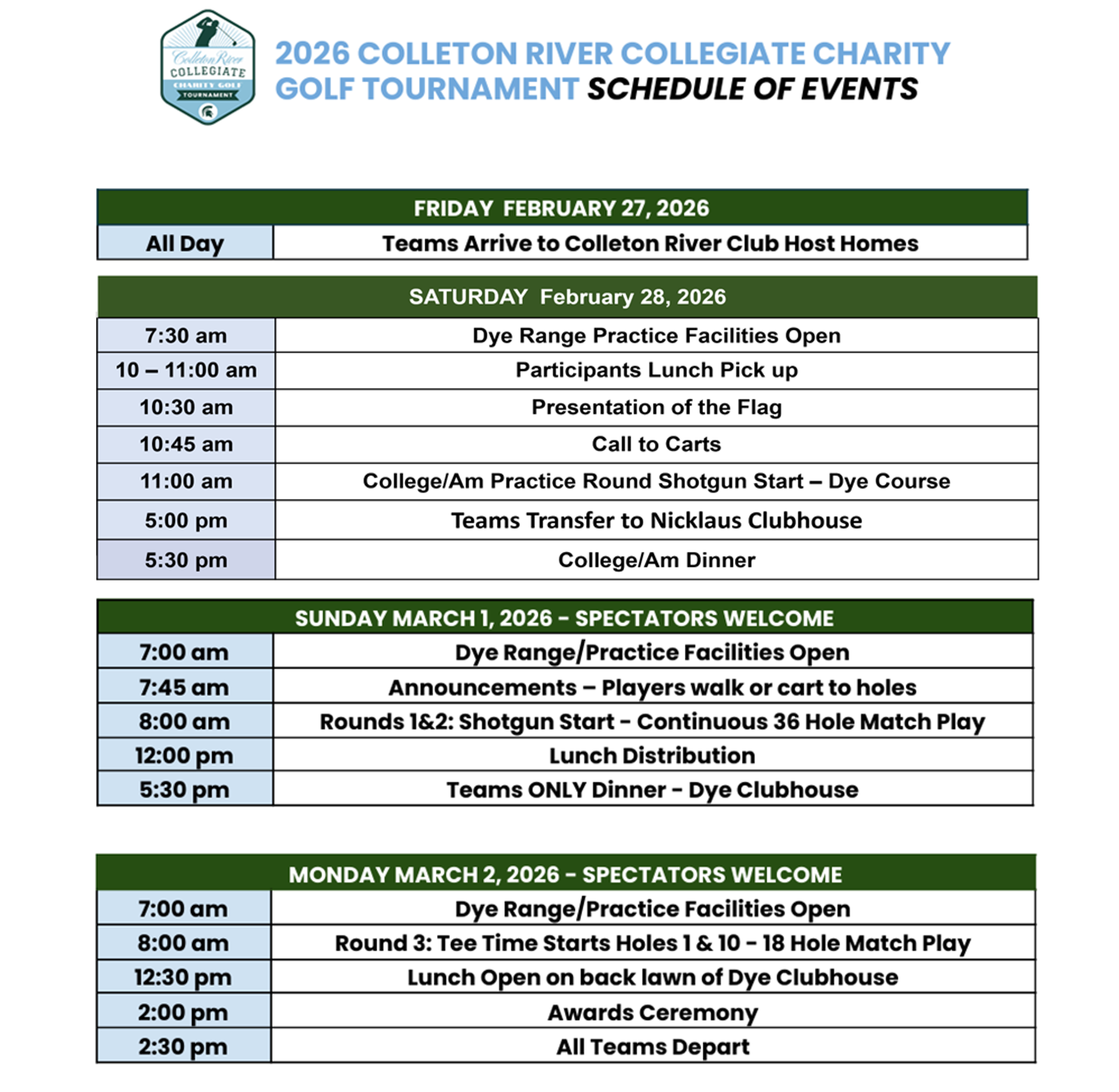 Michigan State University and the Colleton River Collegiate Charity Golf Tournament Committee Announce the Field of Teams for 2026